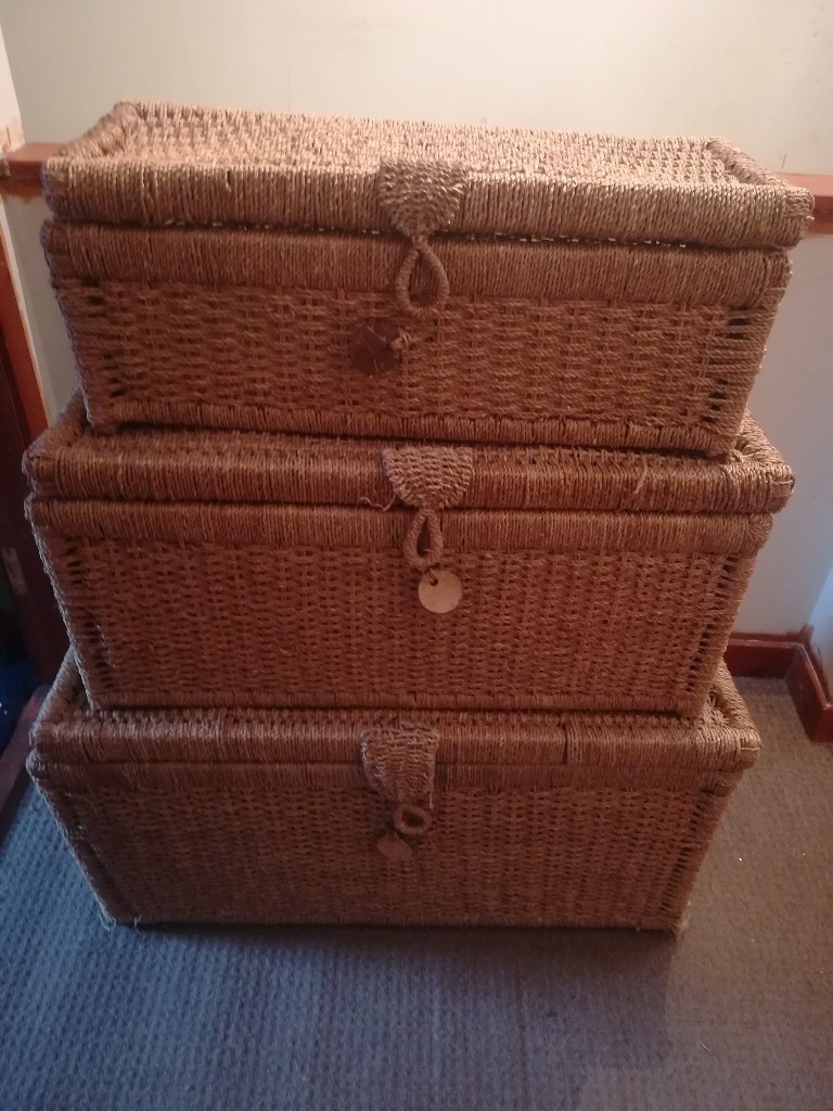 Set Of 3 Wicker Trunks - Buy John Lewis Wicker Trunks, Set of 3, Grey | John Lewis : Double steamed wicker trunk chest lined rope handles in 3 different sizes, available separately or purchase as a set of 3.. We can't get enough of this set of 3 storage baskets and how they give you storage space where you need it most it's thoughtfully crafted using reliable wicker and has individual storage slots that are great for holding and organizing up to. Small and large wicker storage trunks are wonderful pieces of furniture to store all types of things. Rectangular trunks are always practical with plenty of room for blankets, heirloom quilts and pillows. Wicker storage trunks & benches. You can also buy stylish wicker trunk sets.